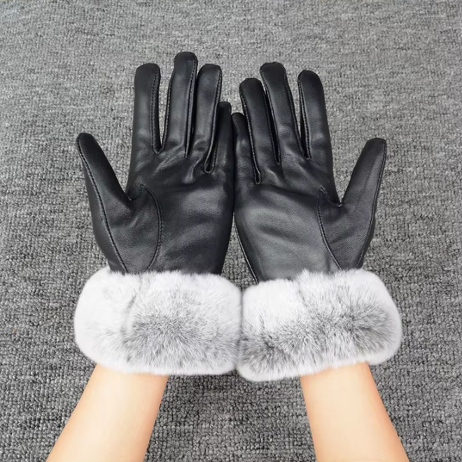 Material: Real Sheepskin Leather & Rabbit Fur Cuff