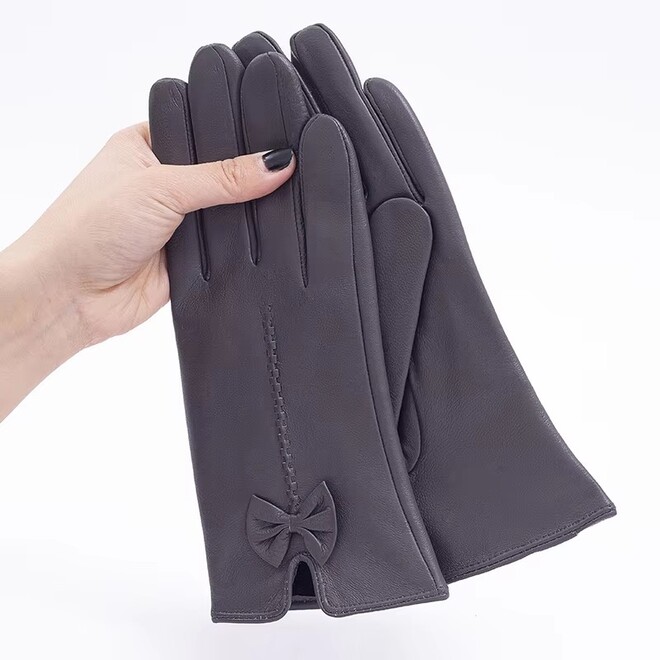 5 Prs Fashion Bow Decorated Warm Soft Driving Leather Gloves